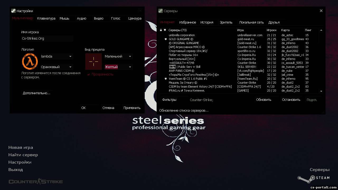 Темы игры для Counter-Strike 1.6 - Надоело стандартное оформление CS 1.6? Тогда вы попали в нужный раздел! В разделе Темы для игры вы найдёте огромное количество очень красивых тем которые вам помогут изменить ваш клиент Counter-Strike 1.6 до не узноваемости! Если вы хотите собрать свой Клиент CS 1.6 то вы опять же попали в нужный вам раздел выберите тему для вашей CS 1.6 и удивите своих друзей или же интернет пользователей!